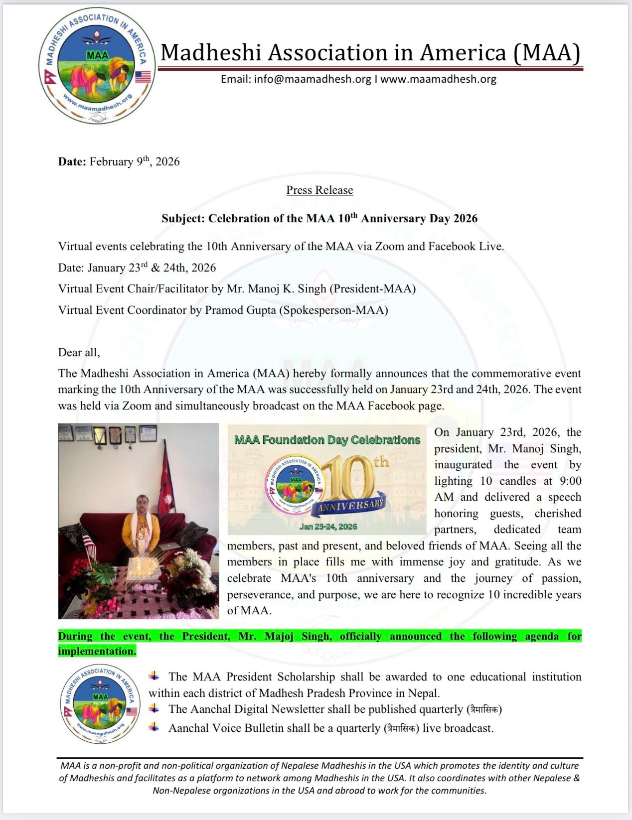 CELEBRATION OF 10th ANNIVERSARY DAY 2026 Published on February 12, 2026 | Category: aachal Press release